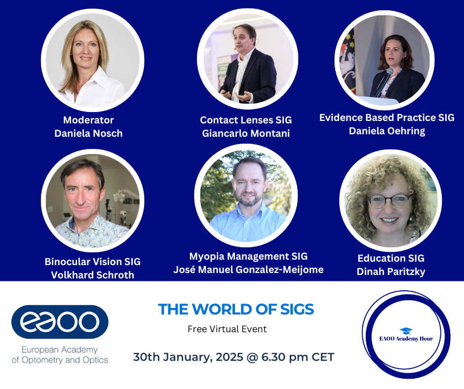 SIGs bring together like-minded professionals, researchers, and innovators who share a passion for specific areas within eye care and optometry. These groups are vital for advancing knowledge, sparking innovation, and creating a sense of community.