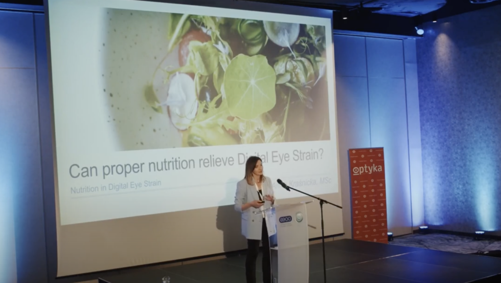 Nowadays, in optometric practice, it is not difficult to find a patient who excessively uses digital devices during his day. As specialists, we are able to recognize clinical manifestations of digital eye strain. In practice, the management of digital eye strain (DES) includes appropriate correction, blink training, the use of drops, filters, especially a blue light filter, management of accommodative anomalies. And should an optometrist also manage the diet of patient with a DES? In my presentation, based on scientific research, I want to present what micronutrients can affect the alleviation of DES. I will refer to the anti-inflammatory, antioxidant of: omega-3 fatty acids, lutein, anthocyanins and give information on what exactly these ingredients can work in relieving DES and in which food to find them.